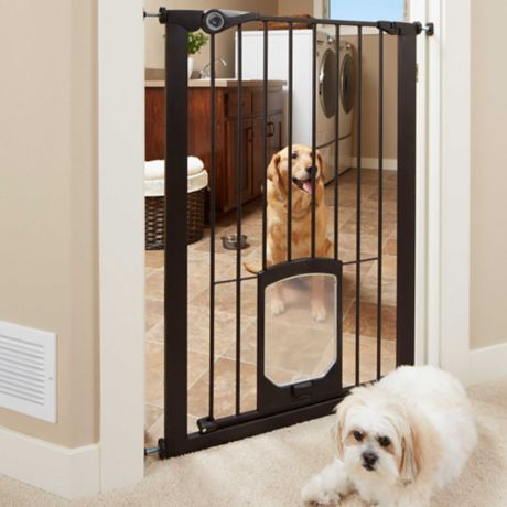 Mypet Passage 42 Inch Extra Tall Pet Gate With Small Pet Door In Matte Bronze Bed Bath Beyond
