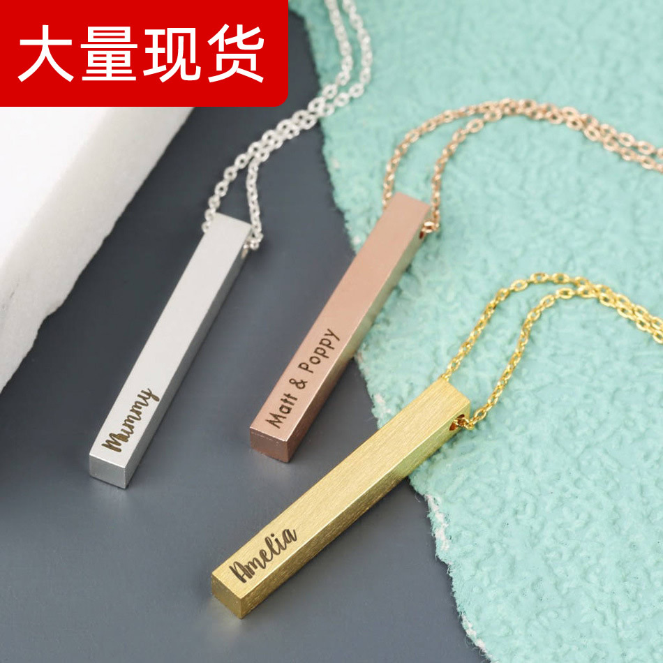 Personalize Custom Name Necklace Stainless Steel Cubic Square Bar Cuboid Pendant Engraved Necklace For Men Women Shopee Malaysia